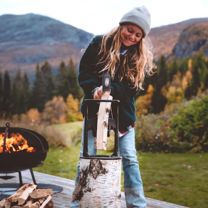 The Kindling Cracker was invented to allow everyone, from children to grandparents, the joy of splitting wood easily and safely.